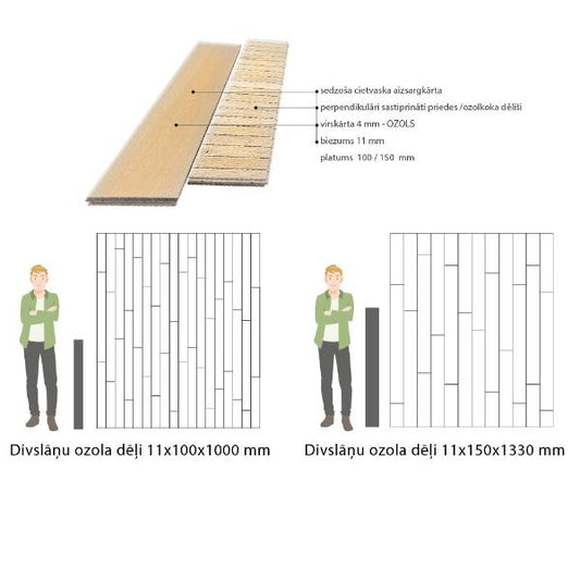 Kolekcija: Divslāņu ozola dēļi (11 mm biezums)